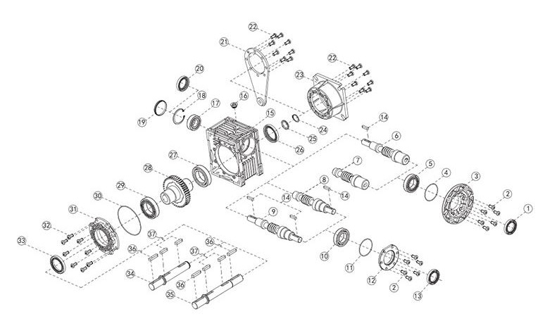 7、第一關次使用NMRV蝸輪蝸桿減速機時,在其運轉150-400小時后更換潤滑油,以后的換油蝸輪減速機周期小于或等于4000小時,定期檢查油的份量和質量,保留足夠潤滑油,及時更換混入雜質或變質的油。